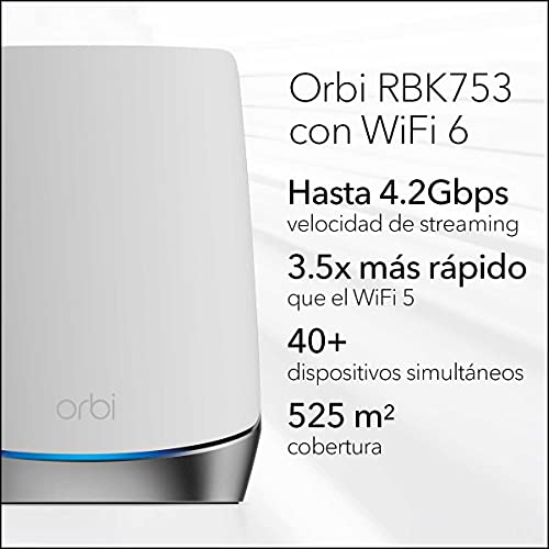 NETGEAR Orbi RBK753 Sistema WiFi 6 Mesh Tribanda AX4200. Kit de 3. Cobertura de 526 m2 y hasta 40 dispositivos.